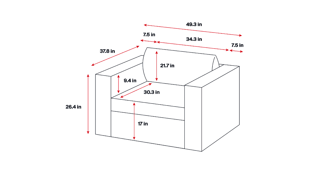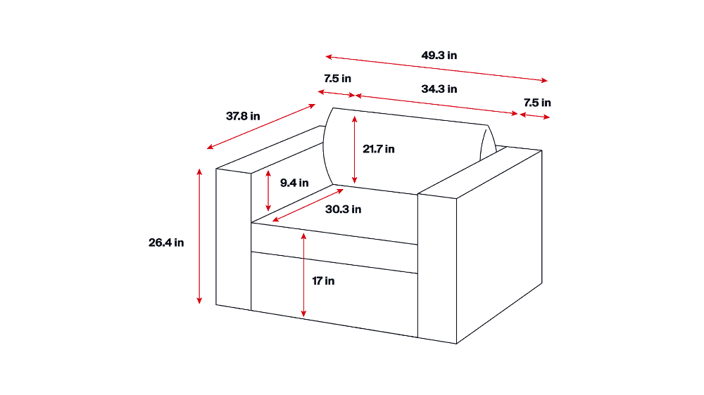 Product: (H) 26.4in x (L) 49.3in (W) 37.8in